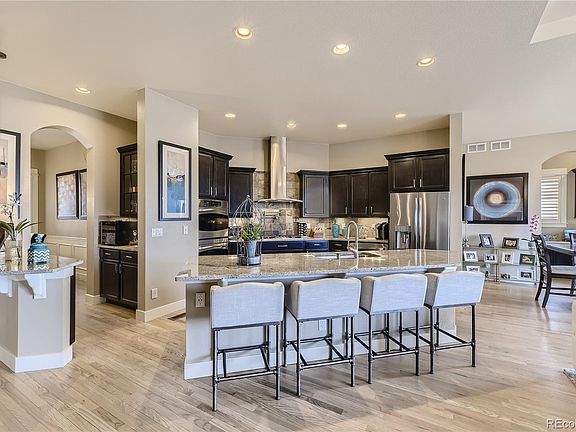 This stunning 3 bed / 3 bath home is located on a peaceful street close to parks and open space, with easy access to a ton of fantastic amenities such as top-rated restaurants, coffee shops, grocery stores, bars, yoga/fitness studios, and breweries in Parker. Situated in one of Colorado's finest school districts and surrounded by million-dollar homes, this is an absolute gem offering unmatched quality and some of the coolest tech available at any budget. The immaculate floorplan is bathed in natural light from the generous windows throughout, showcasing exquisite upgrades including newer hardwood floors, Bluetooth enabled fans with retractable blades, modern hardware, speakers built into the recessed cans, and stylish finishes throughout. With nearly 4,500 sq ft of total space (2,238 finished on the first floor with all bedrooms on the main level), there is plenty of room for comfortable living and it is perfect for buyers who need (or want) main floor living only without having to use the stairs to get to bedrooms. The gourmet kitchen boasts high-end stainless appliances, a double-oven, 3cm granite countertops, a large farmhouse sink, pot filler, stunning backsplash, and rich cabinetry providing ample storage. It's wonderful to have an attached 3-car tandem garage and new Trex deck along with a formal butlers pantry, built-in office, and designer mudroom. The unfinished basement with 9' ceilings is already plumbed for a new bathroom and offers the perfect canvas to double the finished square footage of the home with a man-cave/she-shed, game/media room, and two extra bedrooms **the gym floor and exercise equipment can be included with the right offer.** The home. also has newer mechanicals (furnace serviced annually/hot water heater/AC/electrical panel) to make it move-in ready without worries about a buyer needing to upgrade the systems. Don't miss the chance to call this home your own!