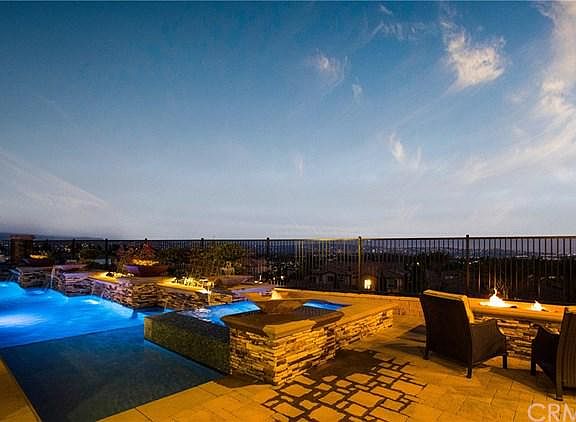 FANTASTIC one story home on a single loaded cul-de-sac street with PHENOMENAL views of mountains, hills, city lights & even fireworks!!! An outdoor kitchen is an entertainers dream with a teppan grill, large BBQ, 2 burners, sink, 3 refrigerators, 2 TV areas, built in heaters, granite counters w/seating for 12+, ceiling fans, covered patios & more! The pool & spa are further enhanced w/fountains & firepits along the view edge. An outdoor shower PLUS an outdoor bathroom, complete the outdoor paradise that awaits you! Inside the elegant foyer w/high ceilings step left or right into separate wings of the home. The right wing offers 2 en suite secondary bedrooms, bonus room w/surround sound & built ins & an indoor laundry room providing access to one of 2 garages on the property. The opposite wing features a den or office that is currently used as a second living room. A master suite comprises the entire left side of the home & offers huge built in bookshelves, built in vanity w/beautiful sconces that match the center chandelier & a sliding glass door to access the pool & spa. A generous master bathroom has dual sinks, huge walk in shower, oversized soaking tub & a makeup vanity too! Upon entering the great room of the home, there's wall to wall views of the expansive space starting at the living room w/fireplace, cozy dining area, family room with an 85TV & surrounding builtins, kitchen w/granite center island and barstool seating plus a spacious breakfast nook too!