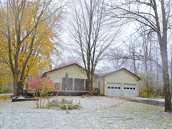 PRIVACY AWAITS!! Set Waaaaay back off the road among towering hardwoods you will find this 2/3 Bedroom 2 FULL BATH ranch home! Open floor plan! Oak kitchen w/ breakfast bar overlooking great room w/ cathedral ceilings and full wall of windows viewing nature! Sliding doors lead to the HUGE WRAP AROUND DECK! Master bedroom suite with private bath! FULL BASEMENT ! Price reflects cosmetics needed! Central AIR !! Architectural roof (2013)