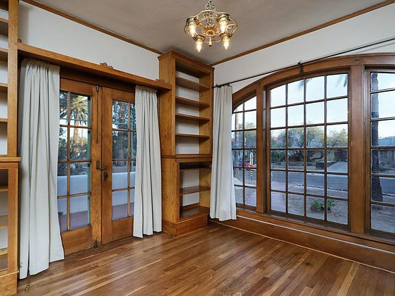 1 of the 1st homes in Sam Hughes (1927). Original interior with mahogany wood trim/ built ins/doors, oak wood floors & bath tile. Grand, arched high ceiling, living room with original plaster. Den/library with arched window & French doors to side patio with original poles for canopy along side of home. Formal dining room with French doors to side patio as well. New electric panel & wiring thru out. Purchased solar system provides Net Metering for electrical meaning minimal, monthly, electric delivery charge. Newer tile roof with warranty & rain water harvesting. A showplace, historic home on a large lot. Historic real estate tax reduction possible for primary residence. Floor plan under virtual tour.