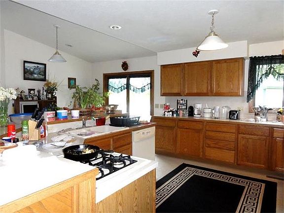 Ranch home set back on edge of property for privacy. Open floor plan, full unfinished walk-out basement, large deck and 20x30 detached garage/shop.