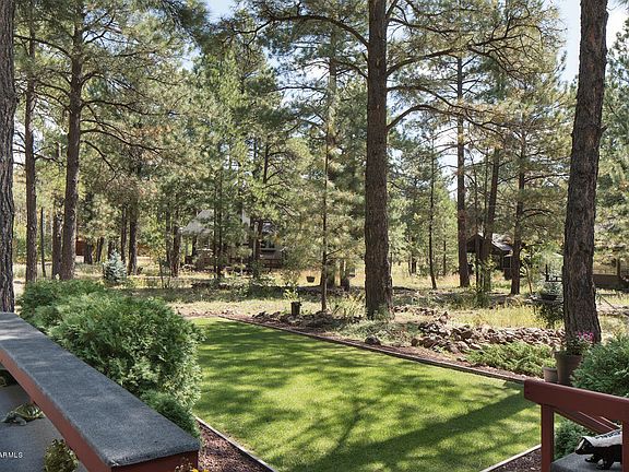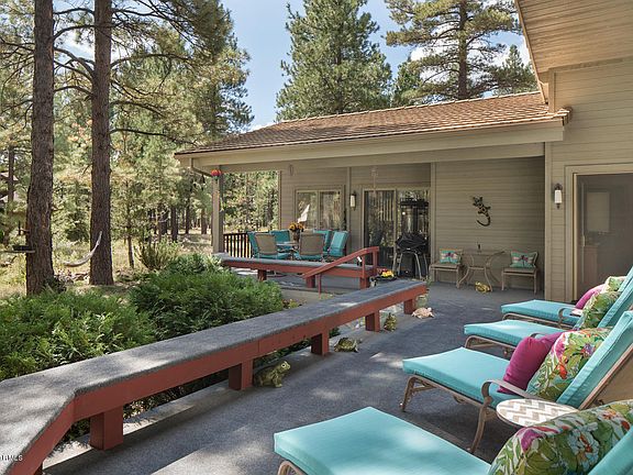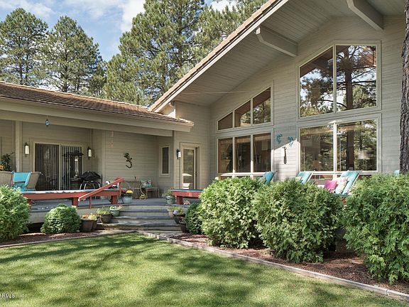 This is a fantastic opportunity to purchase a SINGLE LEVEL home in Forest Highlands and enjoy northern Arizona's premiere luxury golf community. This Bewley-built home is located in a cul-de-sac, encompassing nearly a 1/2 acre, with a terrific backyard -- including a Bocce Ball court. The home has 4 bedrooms, 3 baths and a floor-to-ceiling stone fireplace that is the focal point of the living room. An additional room off the living room may be used as an office, game room, library or an extended guest living space. The additional room has a separate entry and connects to the 4th bedroom - making it private for your guests. This a one-owner home that is well-built, energy-efficient, handicap accessible and has an oversized two car garage - perfect for a full-time or seasonal homeowner.