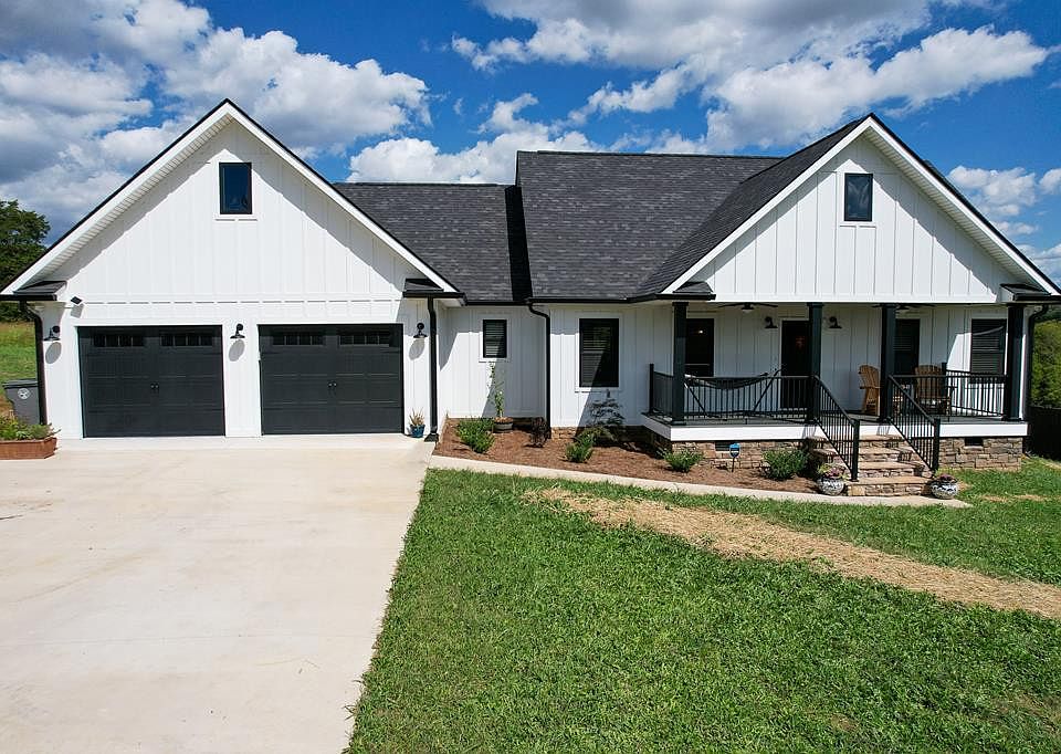 New construction Farmhouse Chic with Mountain View in Tusculum!! This 3BR/2BA has it all!!! The Great Room is showcased by a shiplap accent wall with gas log fireplace, 9 inch Luxury Vinyl Plank natural wood look flooring and cathedral ceilings. The kitchen is situated in the corner and is a work of art in itself with a 5X10 island featuring a full contiguous slab of high quality granite with seating ledge. The Fabuwood brand soft close solid wood cabinetry features white cabinetry on top with beautiful black accent color along the bottom and gray barnwood look setting off the island. Recessed LED lighting and Farmhouse style lighting fixtures throughout the home. Black stainless appliances, all faucets throughout Delta and Moen and all granite countertops with black features. The black metal island lighting is superb and 2 designer ceiling fans finish off the look. Off the great room there is an office that is extremely convenient to the living area while providing a dedicated area for work. Huge 8X8 walk-in pantry just off the kitchen! When entering through the garage into the kitchen to the left is the large laundry room to the left with lots of storage space with a special extra sneak in entrance to the massive walk in closet for the master bedroom. Very convenient as your laundry can be taken directly into the closet with ease!! The split bedroom design features a master bedroom with a spa worthy master bath with Italian design tile flooring. The master bath has dual granite topped vanities, gorgeous tile walk in shower, large freestanding tub with black faucet that also has a hand sprayer. Master closet access is off the master bath for convenience. On the opposite side of the home are the 2 other bedrooms which are a great size and each have walk in closets as well! Full bath in the hall convenient for guests with granite vanity. Linen closet in the hallway.