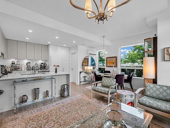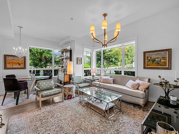 A true standout, the best unit at Ebb & Flow! This corner residence was fully upgraded w/ hardwood flooring carried into the bedrooms, a waterfall island, Bosch apps, A/C on every level, & elegant chandeliers! Offering 1,390sqft across 3 lvls + a 346sqft rooftop deck, this 3bed 3bath home is bathed in natural light, & the view of the bridge at night is something you need to experience! The landscaped yard is the most private in the complex, framed by hedges & greenery, & the sellers cover regular maintenance/cleaning out of pocket to keep it in pristine condition. Rare 4sidebyside parking stalls w/ 3EV chargers complete this exceptional property ($35k value each already paid by the seller!) PRIME LOCATION minutes from Park Royal, Grouse Mountain, Lions Gate Bridge.