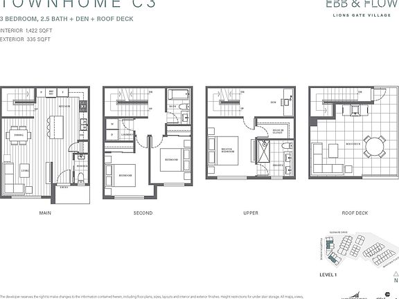 ASSIGNMENT OPPORTUNITY! Completion is only weeks away. Introducing Ebb & Flow master-planned in the new vibrant community at Lions Gate village. Remarkable chance to own a 3 level 3 bed townhouse in this SOLD OUT project with a massive rooftop. Featuring Bosch appliances and quartz countertops with waterfall edges, this open-concept kitchen is fully equipped. With a large walk-in closet & spa-like ensuite bathroom, the primary bedroom offers a relaxing retreat. It has endless features to keep you comfortable, including radiant in-floor heating, durable laminate flooring, and roller blinds for privacy. BONUS 30k decoration allowance + 2 parking stalls and easy reach from park royal, the most beloved north shore parks and Downtown Vancouver.