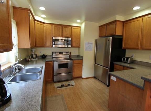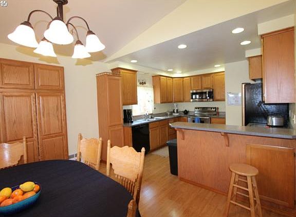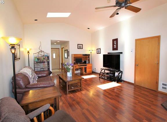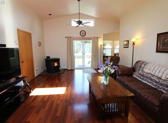 Beautiful, Bright and Light home in an excellent North Bend location. Vaulted ceilings, skylight, and pellet stove in Living room. Great kitchen with stainless appliances and eat-in bar. Master suite with walk-in closet and remodeled bathroom.. separate from guest bedrooms/bathroom. Attached garage, fenced back yard with storage shed. Seller has maintained and improved the home since purchase. Very clean, turn-key home!