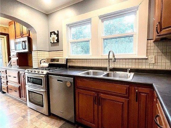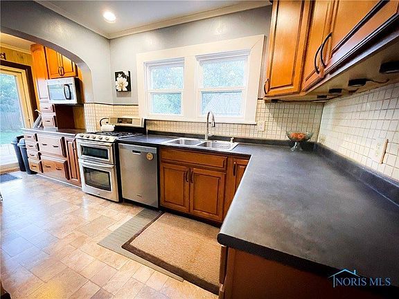 The updated kitchen, huge back deck, landscaping, quiet street and covered front porch are the stars of this home. The basement has been waterproofed so could be converted into additional living space. With a walk up attic and 2.5 car there is plenty of room for all the things. The coved ceilings, original doors and hardwood floors give this home historical character while the double-paned vinal windows fill it with natural light. The nice sized driveway provides ample private parking and the large back yard gives you lots of options for outdoor living.