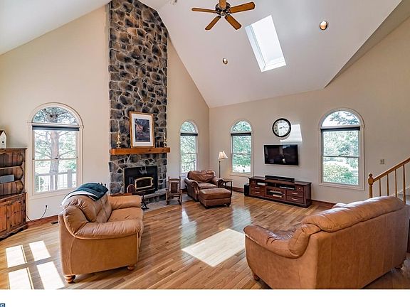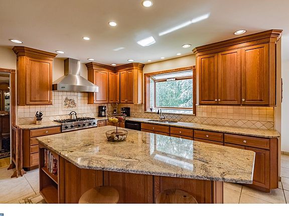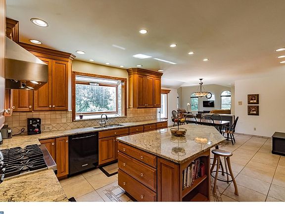 Welcome to this magnificent stone and hardyboard Colonial in Hollis Hills on 3.37 acres with public water and sewer on a picturesque property of beautiful trees and landscaping. Greet your guests in the two story foyer with hardwood flooring. Wine and dine in your formal dining room with hardwood floors, chair rail, crown molding and lovely views. There is a nice size formal living room with recessed lighting and crown molding. Need to work from home, there is a first floor office with crown molding, recessed lighting and pocket doors. As you enter the amazing chef's kitchen, you will see a six burner Viking stove top with a stainless steel hood. The large island is great for preparing food and entertaining with the beautiful granite countertops and seating. The kitchen offers a built in oven, microwave and warming tray. The 42 inch maple cabinets have lighting inside and under cabinet lighting along with many outlets for preparing food. There is tile flooring, a side door that leads to the deck and back yard and an expansive breakfast room which overlooks the two story family room with a two story stone fireplace with a wood burning insert. The family room also offers wood flooring, ceiling fan and many windows that overlook the maintenance free deck and expansive backyard. There is also a back staircase off the family room. Let's finish the first floor with a half bath with granite countertop, laundry room also with granite countertops, utility sink, and cabinets along with a three car garage. The upstairs master bedroom has a tray ceiling, recessed lighting, ceiling fan, and a walk in closet. The master spa bath has a sleek jetted tub, linen closet, gorgeous tile, double sink vanity with granite countertops and cherry cabinetry. The bathroom also has a four person shower with stylish tile and seating. There are three more large bedrooms all with ceiling fans and plenty of closet space. The bright hall bath has a window along with a double sink vanity. There is another finished room with a ceiling fan and three closets, great for additional guests. The walk out finished basement has a kitchen, full bath, dining room, and a living room along with a bedroom. This brings additional square footage to the home. There is another large area in basement just for storage. This home also has all new hardware throughout. Home is close to Skippack Village, Restaurants, major highways and many parks. This is a must see.