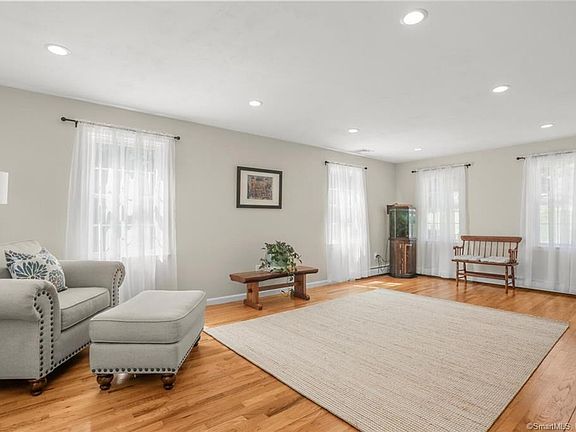 Vacation in Your Backyard! Nichols center hall Colonial set back from the road with newer heated spa/in ground pool. Beautifully updated with hardwood floors, eat in kitchen with granite/travertine & bay dining area, large living rm with recessed lighting, formal Dining rm with wainscoting, Cathedral Family rm with wood stove fireplace opens to glass enclosed Sunroom with radiant heating/AC, new tile/marble Powder rm on main level. Primary BR suite with tile/quartz Bath and walk in closet, 3 additional Bedrooms with hardwood floors and tile hall Bath on upper level. Large expandable lower level. The heated inground pool with spa opens off the Sunroom and is surrounded by generous bluestone paver patio. All located steps to the Nichols Green, NIA community center, Library, Historic Society and Trumbull Farmers Market (on Thursdays)!