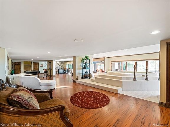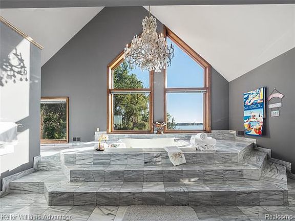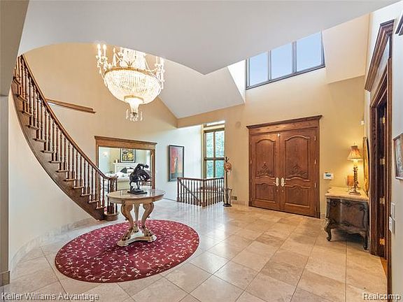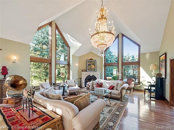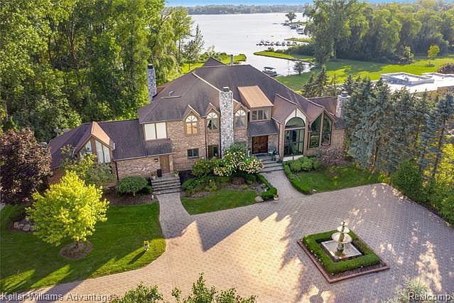 Your own private gated lakeside estate on 1.75 acres of sparkling blue water & wooded splendor. Main lakefront & private bay afford the ultimate in lake living. A pavered motor court surrounds the 2 tiered fountain for parking & entertaining. An incomparable value for size, view & location. Unlimited space for all your building needs. Incredible grounds, walk out site & Birmingham schools. Or keep the 7,500 sq ft home with a full walkout & 4 car garage & renovate to perfection. The choice is yours. A gorgeous all sports lake with panoramic lake views & enough land for the home of your dreams! Plans available.