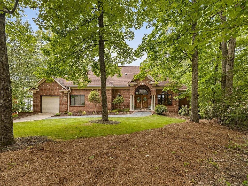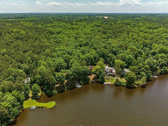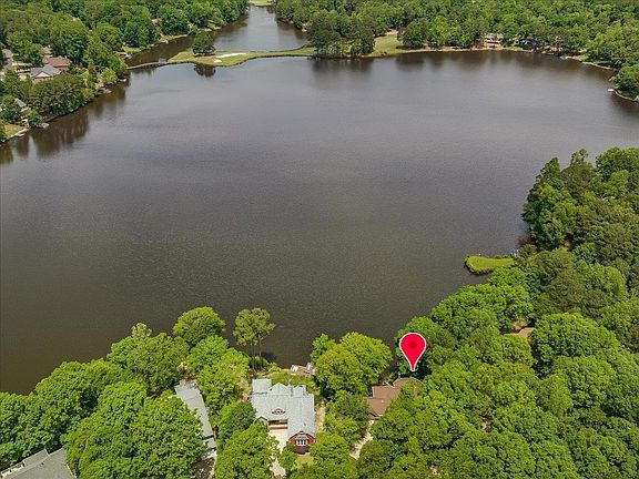 Enjoy Lake Life! South Landing at Carolina Trace. This lakefront home with private dock is in a gated community. (Golf, boating, fishing), brick and at the end of a cul de sac. Almost all of the rooms have spectacular lake views, open kitchen, vaulted ceiling great room, fireplace, hardwood & tile floors, solid surface countertops. Four Season Carolina Room, double level rear deck for hot tub overlooking water. Bonus Room. Primary bedroom on main level with 3 secondary bedrooms on the lower level. Close to Vinfast, Hwy 87, 421, military bases and easy commute to RTP, RDU via US 1.