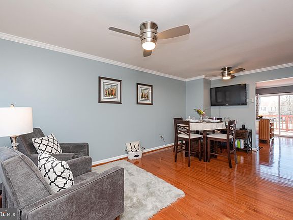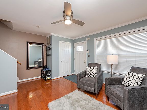 Victorian style townhome presents 4 levels with 3 bedrooms, 2 full baths, and over 1,634 sqft. Gorgeous hardwoods invite you inside to find an upgraded home featuring refined crown moldings, a sun-kissed living room with heightened double windows, a dining area with a modern lighted fan, and a spacious contemporary kitchen. Stylishly redone, the kitchen features Shaker cabinetry, a center island, stainless steel appliances, granite counters with contrasting backsplash, and space for a table. A 4th level houses the owner's suite displaying an angled ceiling, a walk-in closet and a private bath with a vessel sink and a shower tub combo. The lower level adds to your livability and entertaining spaces including a family room, a walkout to the yard, and extra storage. Convenient to commuter routes, shopping, recreation, golf courses, commuter routes, dining, parks, and more.