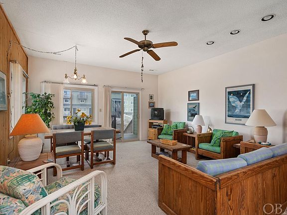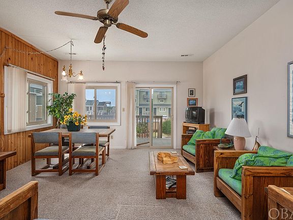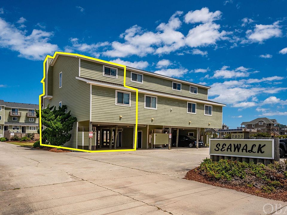 Welcome to this cozy 2-bedroom, 2-bath end unit semi-oceanfront condo, a coastal getaway that offers a comfortable retreat with ocean views from the upper level and a practical layout designed for a relaxing beach vacation.  Located in the oceanfront Seawalk Condominium community, this never rented end unit features two individual living spaces with a bedroom and private deck on each, easy access to the beach and community pool, private outdoor shower, dry entry right from the carport, and plenty of guest parking. The location also offers convenient proximity to the wide, paved walking/biking multi-use path and all the great restaurants, shopping, and attractions in Kill Devil Hills and the surrounding areas. This is a place where you can embrace the simplicity and ease of condo living and enjoy the ocean's beauty without the hassles of traditional home maintenance. The first level is a comfortable space featuring an open living/dining area with a private covered deck overlooking the landscaped pool, adjacent galley kitchen with a convenient pass-through, a full hall bath, and the first of the two large bedrooms.   On the second level, another casual living area offers a fireplace and private sun deck providing a delightful spot to enjoy the fresh ocean air and catch glimpses of the nearby sea. There is also a full hall bath and large bedroom on this level. This end unit provides a bit more privacy, and the partial ocean views remind you that you're just steps away from the sand and surf.  Whether you're seeking a relaxing second home getaway or beach vacation rental property, this cozy semi-oceanfront condo offers a relaxing retreat for a laid-back vacation by the sea. Rental projection estimates Advertised rental income upward of $47,600.