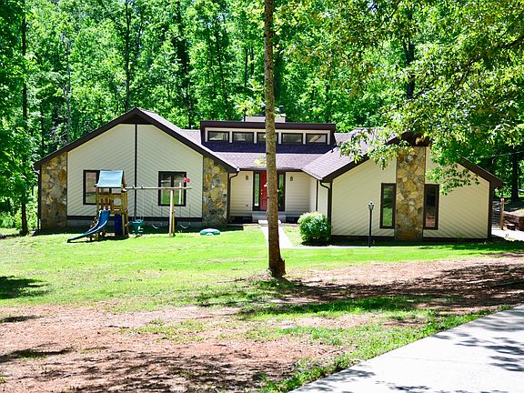 One-level beauty on cul de sac with over 5 acres of level and rolling land that is embraced by a creek that creates an oasis of serenity amidst the tall hardwood trees. The long private driveway leads to a spacious contemporary home with windows designed to allow an abundance of natural light in every room; the rooms including all bedrooms are spacious, the family room features a stone fireplace & skylights overlooking a rear deck for family gatherings and an area to watch the deer and wild turkeys. NOTE: New Roof & Gutters