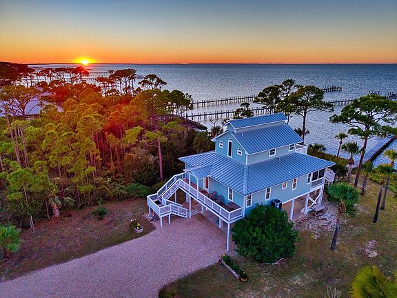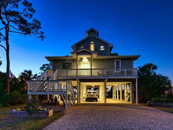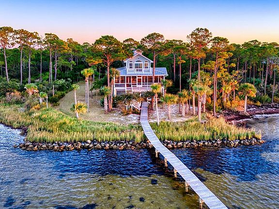This beautiful St George Island bayfront home is located within the gated St George Plantation and fronts Apalachicola Bay offering fantastic views. The home sits on a 1 acre parcel with 100' of bay frontage providing privacy and solitude. This 3BR/3BA residence has been completely renovated by the current owners. Exterior renovations included new roof, impact rated windows and doors, Hari Plank siding, HVAC, marine grade lighting, front and back decks, stairs, porch screening, underpinning, driveway, landscaping, exterior painting. Interior renovations include, new custom cabinets, vanities, countertops, sinks, plumbing fixtures, water heater, tubs, fireplace, electrical fixtures, interior doors, tile shower, tile kitchen backsplash, tile floors in baths, appliances interior painting, refinished solid oak wood floors. The St George Plantation community amenities include 24 hour gated and roving security, community clubhouse, 2 pools, airstrip, fitness center, tennis and pickle ball courts and 7 miles of white sand beach. Come take a look, it's coastal solitude at its finest.