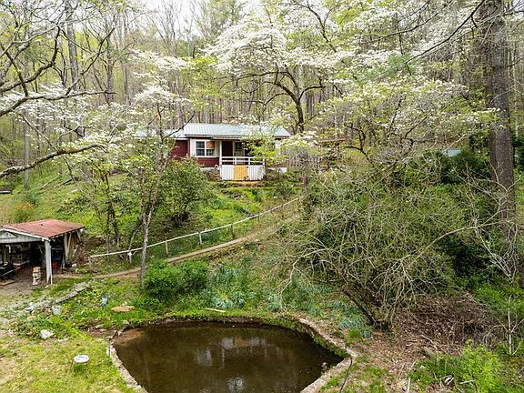 If you're looking for a home that offers everything you need for sustainable living, this 1.97-acre property is it. The charming two-bedroom, one-bathroom home has original hardwood floors and knotty pine walls in the living room. A new tin roof and fresh paint make it move-in ready. The property backs up to USFS, offering privacy and seclusion. A year-round flowing creek provides gravity-fed spring water, and a 250-gallon reserve water tank has been installed. The creek flows the length of the property, feeding a pond in the front yard that can be stocked with fish or used as a swimming hole. Along with the numerous forageable native plants, the property's organic vegetable and herb garden has been successful for over ten years. A private trail from the backyard connects to thousands of acres of beautiful wilderness. Bring your 4-wheeler or hiking shoes and explore. In the front yard, there's a 10'x20' shed, a brand-new 8'x10' building, and a hook-up for a camper or RV in place. This property has good bones and would make a fantastic Airbnb. It has everything one needs for sustainable living in the wilderness, yet it's only a short 4-mile drive to town.