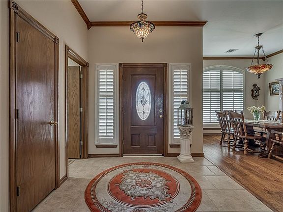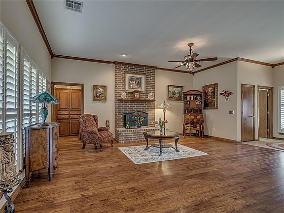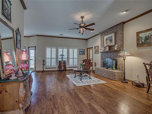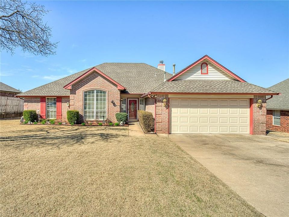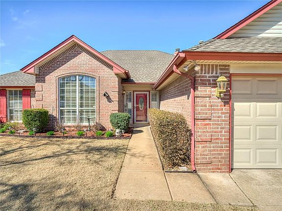 Extremely clean and move-in ready! The pride of ownership shines throughout this 3 bedroom, 2.5 bathroom home located in the highly sought after Oakwood East Royale neighborhood. Home features beautiful wood flooring, faux plantation blinds, fireplace, solid surface countertops, gate stove in kitchen, oversized 3 car tandem garage, storm shelter, lovely flower beds, upgrading exterior siding that comes with a life-time warranty, and much more. Homes like this do not come available often. Located close to Tinker AFB, Rose State College, Highway access, shopping, dining, parks, and other great community amenities. Call now for a private showing.