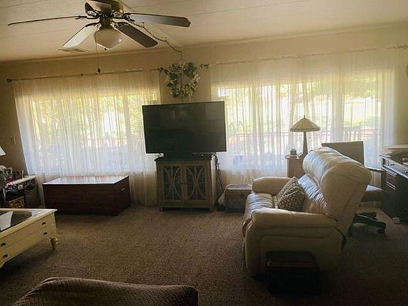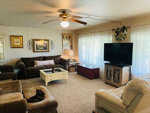 Imagine relaxing/entertaining on your huge wrap-around covered porch overlooking Hole #1 of Tucker Oaks Golf Course! ...then move into your spacious Living Room w/ panoramic view windows that bring the lawn & trees of the course inside! Or, enjoy the separate den area or dining room. Many, many updates/upgrades to this 1440 sq.ft. home in Fairway Oaks 55+ Park. Newer: roof, high-end flooring, stainless steel appliances, custom kitchen counters & backsplash, new bathroom w/ quartz tile shower, and more! Tons of inside storage & 2 outside sheds. ALL COPPER WIRING & updated electrical! (as per electricia ) ENJOY our easy life style in this friendly park... w/Clubhouse, activities, billiards, & more--& outside sunny Pool!! One person needs to be 55+.