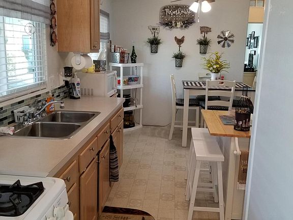 Bright & airy, vaulted ceiiling, lots of nice touches. Large kitchen with glass backsplash. Front porch entry. Shed stays & has power. New argon gas windows throughout, insulated metal roof. Includes washer/dryer too! Security screen doors, fruit trees. Master has walk-in closet. Backyard gazebo area to enjoy BBQ's & get - togethers, with an open view. Park has clubhouse, pool, social activities.