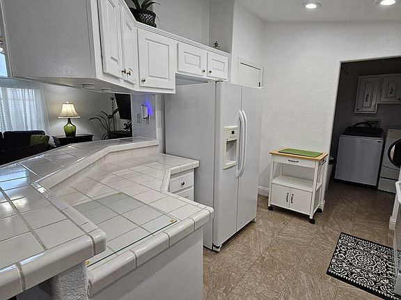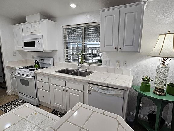 This home feels and looks like it's brand new! Lots of upgrades here. Vaulted ceilings with origami ceiling in the living room, recessed lights and open living area make this home light and bright! Rare 3 bedroom home in Senior (55+) 5 Star Park. Bright & white kitchen with a breakfast bar, and all appliances come with home, including washer/dryer and refrigerator. Large pantry in kitchen for extra storage, and storage cabinets in utility room. Recessed lighting in kitchen and lots of counter space too! Primary bedroom is large enough for a Cal King bed, and has 2 large closets This bedroom leads to a very nice large rear screened in porch. Primary bath is large, with dual sinks, a big shower that has 2 shower heads & seats, and a large storage closet. Ceiling ...read more... fans throughout, tile entry, mirrored closet doors throughout, security screen doors on all 3 exterior doors, Hardi Board siding and comp roof, window covering throughout, central heat & air, all 4 flatscreen TV's stay. This home is also very well insulated. There is a large carport with a privacy screen, and a nice storage shed. There is room for a little garden in the yard too! The community is located next to Tucker Oaks Golf Course, it includes a pool, spa, a club house that can be used for private events, and social activities. Pets are allowed but need to be approved by park. Just a quick drive to Safeway, $ Store, restaurants, etc. Good location!