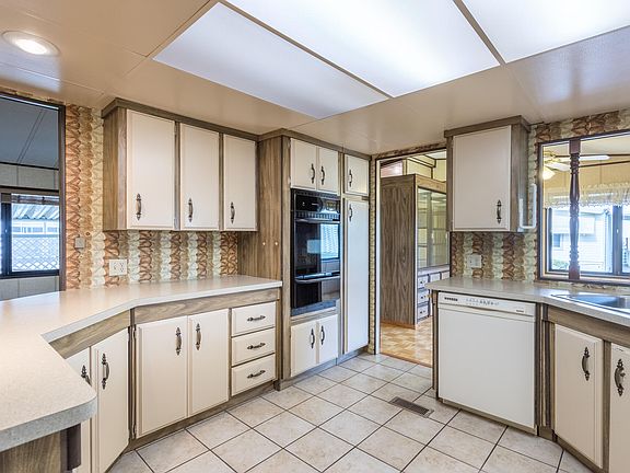 Step into a world of comfort and convenience with well kept 2 bedroom, 2 bathroom mobile home, offering a generous 1536 square feet of living space This home stands out with its inviting wet bar and expansive family room, perfect for hosting gatherings or enjoying quiet evenings. The kitchen complete with a breakfast bar, offers a welcoming space for morning coffee or casual meals, seamlessly flowing into the den for additional relaxation or entertainment space.