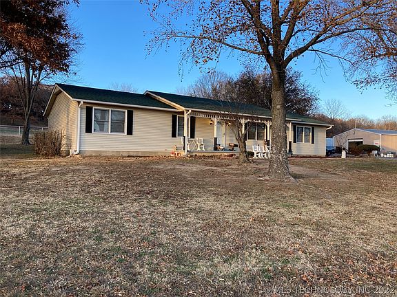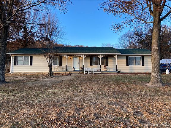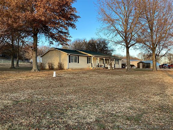Amazing country home on a beautiful hillside just east of Claremore. A versatile floor plan being either 4 bedrooms & 3 baths or MIL plan since there is separation and a second kitchen. Large country kitchen with granite, porcelain tile backsplash, plenty of real wood cabinets, Garland commercial range, under counter lighting and hardwood floors with a nice warm wood stove & dining area. Lighting, plumbing fixtures, dishwasher, disposal, switches, receptacles, granite, sinks, porcelain tile floors, carpet, roof & painting are all new & updated including the crystal door & cabinet knobs throughout. Oversized laundry/mudroom with pantry and laundry sink. Over 8 acres of a great mixture of mature trees, pasture and a large, stocked pond. Paper shell pecans, cherry, plum, fig & native trees all under fence including over 3,200' of 5'3" tall pipe fencing & entry. 30' X 40' insulated, sheet rocked, heated & cooled shop, 24' X 35' pole barn with concrete floor and 18' X 20' greenhouse. OMMA Approved with 7 security cameras.
