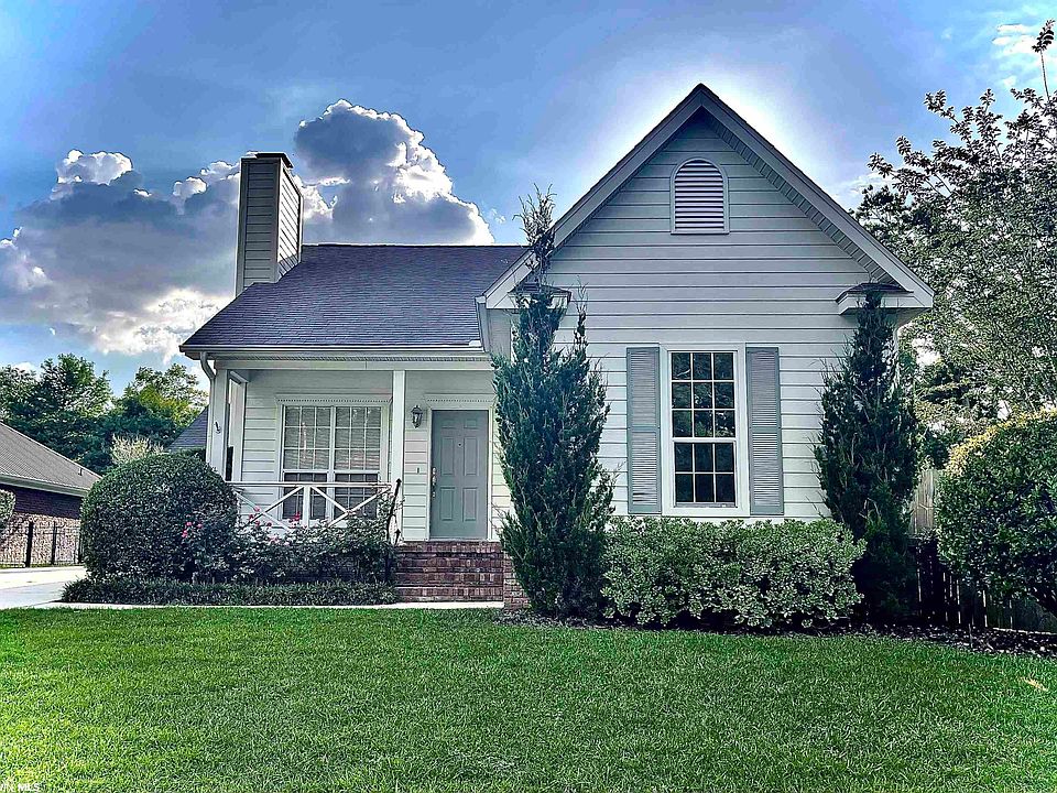 Picture perfect house for entertaining and gardening in Fairhope's River Mill neighborhood! This 3 bed 2 bath + sunroom + bonus room is all on one level for easy living. Luxury vinyl plank flooring in living areas with carpet in bedrooms. Neutral interior paint colors. Open concept Living/Dining/Kitchen. Spacious Living Room with gas fireplace. Kitchen has stained wood cabinets, granite counters with lots of countertop space. Primary suite with walk-in closet, 2 vanities, tub/shower combo. Guest bedrooms share a hall bathroom. Sunroom overlooks lush backyard to include water fountain feature. Gorgeous landscaping with irrigation system. Gazebo with fire pit and lights as well as a small shed. Fenced backyard to include a dog run. Single car garage. Extra parking area beside driveway. Hardie board exterior with a brick skirt. HOA dues are $135/year. Fairhope Single Tax colony property. Water heater 2020. HVAC 2019. Roof 2012. Fairhope schools. Close to hospital and Wal-Mart. All information deemed reliable and accurate. Buyer to verify all information.