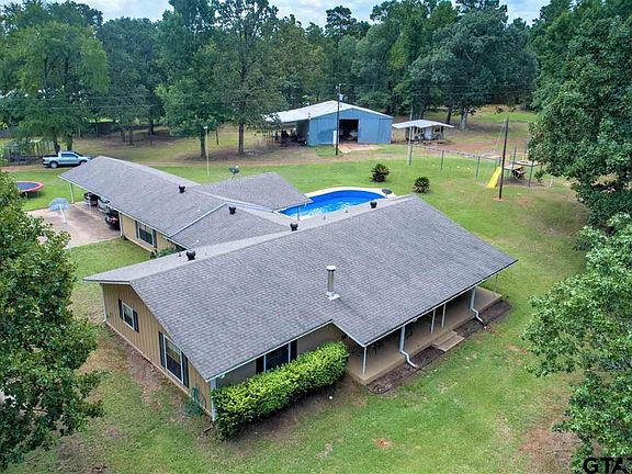 Stay-cation home! So much to do! Beautiful 2859 SF, 3/2 with 3 car carport on 10 gorgeous acres, with stocked pond for fishing, playground area with swings, fabulous pool with brand new, July 2020 pool liner, and a fantastic 40 x 40 shop with slab floor, electric, and giant shop radiant heater. Property has RV hookups, RV dump station, with separate propane supply to shop and separate propane to home. Shop and office on separate electric meter from home. Office with half bath. Huge game room, oversized bedrooms, massive kitchen area. 2018 new central heat and air, wood burning fireplace with blower insert. Will not last long! Call today!