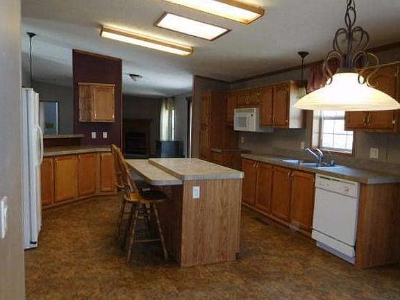 Come take a look at this spacious four bedroom, two bathroom manufactured home on 5.9 acres! Inside you will find large bedrooms, vaulted ceilings, a large kitchen with an island, lots of natural light, and plenty of closet space. Outdoor features include a 26x30 Garage with 10' sidewalls, a patio and fire pit out back, and an extra large yard!! Schedule your showing today!