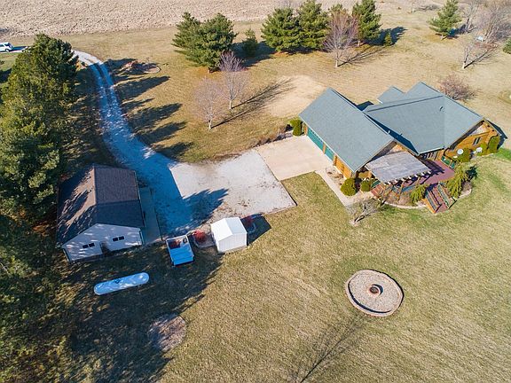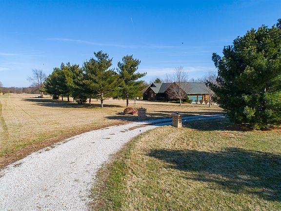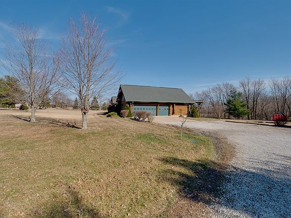 Your authentic log cabin oasis is here! Relax on the back deck, front porch, out in the woods near the creek, at the custom stone firepit, or anywhere in your 2.43 acres! Property backs to and partially includes Money Creek. Wildlife nearby includes deer, turkey, large variety of birds, etc. Enjoy 5 car spaces: oversized attached garage is 750 sq ft, with huge storage on the mezzanine. Detached 2 car garage has 529 sq ft, and a full bathroom! Deck is 420 sq ft, partially covered by pergola. Shed in backyard, and additional shed off driveway, which has private access as you roll in and are welcomed home. Interior boasts living room entertainment system, stainless steel appliances, island/bar seating, hickory kitchen cabinets, fireplace, bedroom with loft, first floor laundry, and master suite with walk in closet. The list goes on! Updates include 2017 new reverse osmosis system, 2017 new 90 ft private well, 2018 new master tub/shower surround, 2018 new windows (some) including basement egress window for potential expansion and adding bedrooms, and 2020 new sump pump. 55" zero turn Bush Hog mower stays with property. See for yourself what this amazing cabin home minutes from town offers you.