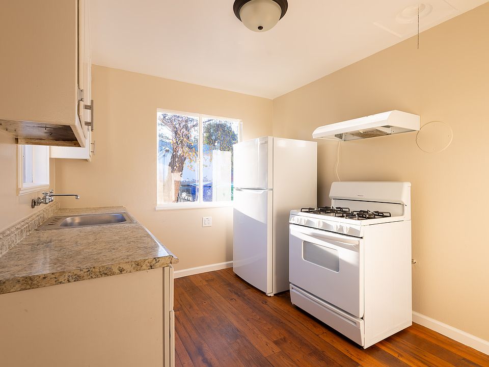 Warm, homey cottage style one-bedroom apartment at the front of a duplex for rent near Hayward in Cherryland. It would be ideal for a single person who enjoys a quiet and comfortable space full of amenities. It is newly painted, with a new air conditioner and refrigerator. While many Bay Area apartments are cold in the winter, the gas fired wall furnace warms the space quickly and keeps it cozy and comfy. It includes a washer and dryer on site as well as ample storage space in the kitchen, hallway, and bedroom. The neighborhood has little traffic and a number of families. It is very pleasant. You would be a short walk away from restaurants and a shopping center with a grocery store. It is a beautiful, well-maintained space that feels good to spend time in. There is a large yard in the back with paved and unpaved parking, as well as parking on the street. We'll be having an open house on Saturday, February 8 from 12 to 3 in the afternoon. No smoking anywhere on the property. Renter is responsible for all utilities (gas, electric, water, Internet, and trash). First month's rent and security deposit are due upon signing. No smoking on the property.