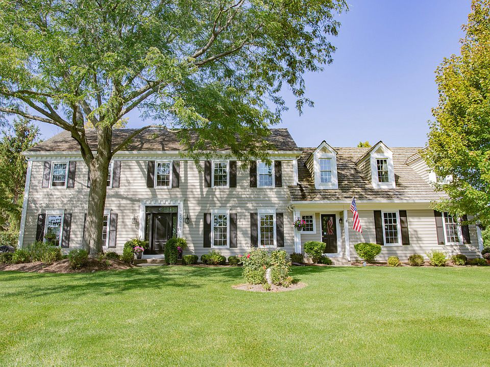 Welcome to this breathtaking waterfront oasis, situated directly across from a playground and park, sitting on just shy of an acre in the sought after Dover Pond Subdivision. Every single aspect of this exceptionally well maintained colonial home has been well thought out. Main floor features include: hardwood floors throughout all living areas; Chef's gourmet eat-in kitchen with white cabinets, stone countertops and stainless SubZero/Miele/Thermador appliances open to separate breakfast room; Comfortable and engaging living room with fireplace and dramatic cathedral ceilings; Formal dining room; plus a separate private office. The second floor offers the much preferred layout with four bedrooms and THREE FULL BATHROOMS! The Primary Bedroom Suite boasts room for a king-sized bed and the luxurious en-suite marble bathroom with double vanity sinks, soaking tub and separate shower. Putting a bow on the interior of the home is the full finished basement with an enormous recreation room. Generous room sizes can be found throughout. Not to be outdone, the unparalleled outdoor living awaits with: an enormous upgraded deck; a stately gazebo; a sizable stone paver patio surrounding the dramatic fire pit; and expansive yards both street-side and lake-side. Top notch schools, numerous restaurants and shops, recreational activities (such as two great forest preserves, and Charlie Brown Park with pickleball courts), and the Deer Park Town Center are all within a short distance. The landscaped natural beauty and attached three car garage complete this truly wonderful home. Unbeatable!