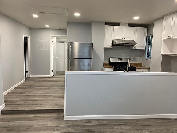 Beautifully remodeled, 2 bedroom/1 bath upstairs duplex home. *New luxury vinyl plank flooring, recessed LED lighting & new paint throughout. *Sunny living room / kitchen great room. *Professionally remodeled kitchen with stainless steel appliances. *Brand new bathroom with modern vanity, storage cabinet and decor. *Bonus storage in the attic. *Private fenced driveway with garage. Conveniently located in the Hayward Cherryland area. Friendly and quiet street. Easy access to 580, 238, and 880 freeways. Close to downtown Castro Valley, restaurants, shopping centers, BART stations and other public transportation. Please contact us to arrange viewing appointment or additional questions. Please provide phone number and available time slots to expedite showing appointment. 20359 Concord Ave, Hayward, CA 94541. One Year lease. Owner pays for water. Tenant pays for other utilities. No smoking or vaping. Pets welcomed with some restrictions. Garage and driveway parking included.
