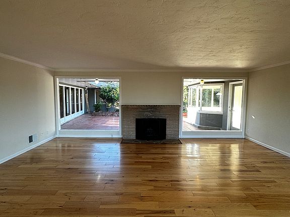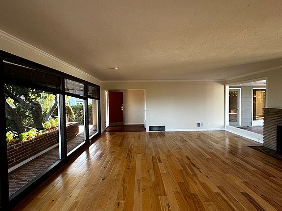 Midcentury Modern Gem in the Oakland Hills Bay Views, Vintage Charm, & Indoor-Outdoor Living Step into timeless design and serene hillside living in this architect-designed midcentury modern home, nestled in the peaceful Oakland Hills. This one-of-a-kind residence blends iconic vintage details with everyday modern comforts, all framed by peek-a-boo views of the Bay and a stunning natural setting. Interior Highlights: Authentic Midcentury Character: Beautifully preserved with original vintage light fixtures, redwood-paneled hallway and cabinetry, porcelain tile bathrooms, and hardwood floors throughout. Spacious Living Room: Expansive floor-to-ceiling glass windows offer tranquil views of the terra cotta central patio and surrounding greenery. (Fireplace is decorative only.) Library/Den: Warm and inviting space with built-in bookcases perfect as a home office or cozy retreat. (Decorative fireplace) Formal Dining Room: Includes a closet and partial hillside views ideal for entertaining. Bedrooms & Bathrooms: Primary Suite: Located at the end of the hallway for added privacy. Features a large closet, separate vanity area with lighting and additional closet, and an en-suite bathroom with both a shower stall and a separate bathtub. Middle Bedroom: Includes built-in bookcases and a private en-suite bathroom with a shower. Third Bedroom: Adjacent to the hallway and near the common bathroom, which includes a shower stall. Kitchen & Utility: Bright Kitchen: Includes a gas stove, 2-drawer dishwasher, and refrigerator. A separate breakfast nook provides morning light and comfort. Outdoor Access: A side door from the kitchen leads directly to the central patio perfect for al fresco dining and entertaining. (Outdoor fireplace is decorative only.) Laundry Room: Separate and fully equipped with washer and dryer. Outdoor Living: Enjoy a spacious, landscaped yard complete with mature fig tree, redwoods, and vibrant flowers an ideal setting for family gatherings or peaceful solitude. Additional Features: Heating: Forced air Flooring: Hardwood, tile, and carpet Garage: Attached with a new garage door and remote Lease Details: Owner Pays: Landscaping & garbage service Tenant Responsible: All other utilities Renters Insurance: Required with minimum $500K liability coverage Pets: Small pets considered with additional deposit Smoking: Not permitted Location: Tucked in the desirable Oakland Hills, with easy access to hiking trails, parks, and local amenities, this home offers a peaceful retreat just minutes from the city. Includes professional landscaping.