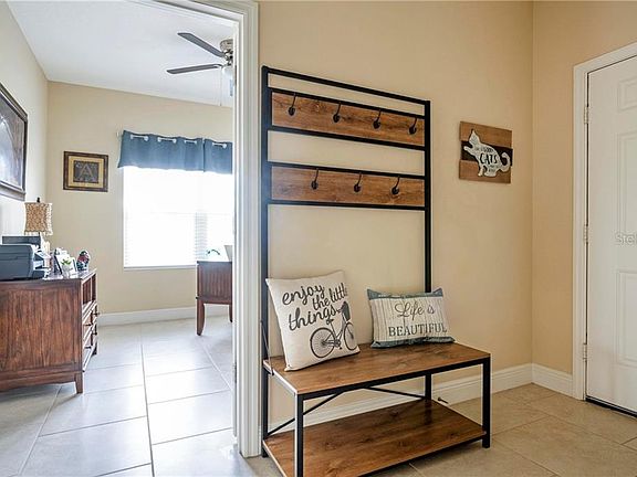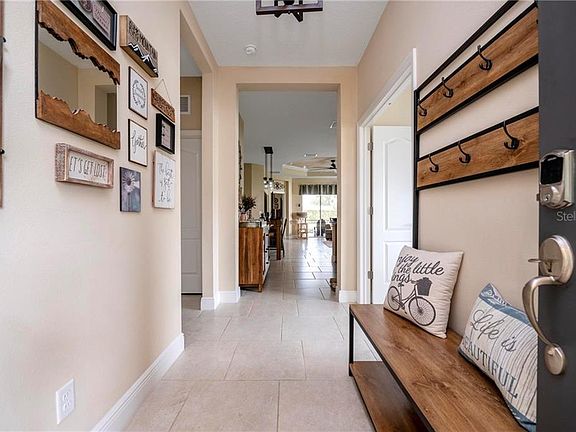 Nestled toward the back of the community, this 2017 paired villa has the most current warm finishes. As you pull into the extended driveway, you can park in the semi-detached garage. Enter through the front doorway, a den is directly to your right, flooded with natural light. Look left and a guest suite with guest bath is situated in the front of the villa. Continuing through towards the back, floorpan opens up to an open concept space. Entertain on the large center island and dining combo or watch the big game in the living room. Either way, you and your guests won't miss a beat with the thoughtful flow of this space. Looking out onto the lanai will not disappoint, with sliders and master windows slightly tinted for privacy. The large master suite is tucked in the back of the house with dual closets. The master bath has dual sinks and walk-in stall shower with half glass enclosure. All fans and lights have been upgraded from builder grade to custom selections. All appliances have 2 years of warranty left for total of 6 years from purchase. Best of all there are NO CDD FEES here!!! If that wasn't enough to peak your interest, head to the community area where you can bring your pup to enjoy the dog park, enjoy the playground, swim in the pool, grill and enjoy Florida weather, or play tennis on the courts!! If you are feeling active, head to trail, located just outside the community, which is a walking trail to 70 with access to parks!