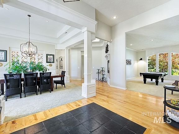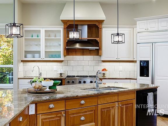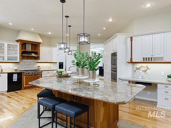 Extraordinary craftsmanship meets impressive scale in Meridian's prestigious Vienna Woods community! Situated on a sprawling half-acre lot, this custom-built ~5100+SF residence marks a refreshing focus on what an elegant home can look like without sacrificing livability. The floorplan lives like a single-level with a desirable split-bedroom layout and fabulous lower-level square footage that provides plenty of room to spread out. Towering ceiling heights, intricate millwork, and beautiful hardwood floors span from formal to casual living spaces, lending each room an air of rich charm and sophistication. Designed for entertaining, the kitchen sits at the heart of the home where the at-home chef will enjoy plenty of prep space along the oversized island, an abundance of storage space, and top-notch multi-tasking abilities with dual ovens, sinks, and dishwashers.