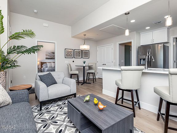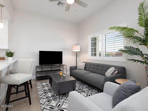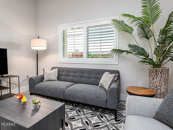 Taking ''Turn Key'' to another Level!! Pristine 2022 Condo in Prime Location. Fully Stocked and Furnished and ready for immediate move-in!! Placita Escondida Condos developed on Prime Tucson Turf. Literally steps from Tucson's Bike Path treasure ''The Loop'' and a 2 minute walk to St. Phillips Plaza, Farmers Markets, etc. Located near Campbell Corridor, with short drive to Banner Hospital, University of Arizona and amazing hiking trails just to the North. Lightly Used Vacation Home in Pristine Condition. Modern, Open Floorplan with soaring 10' Ceilings. Beautifully finished with Luxury Vinyl Flooring, Quartz Counters, Window Treatments and Stainless Appliances. Asking price includes all Furnishings, Art and Household Goods. Community Pool. Short Term Rentals Allowed in Placita Escondida!
