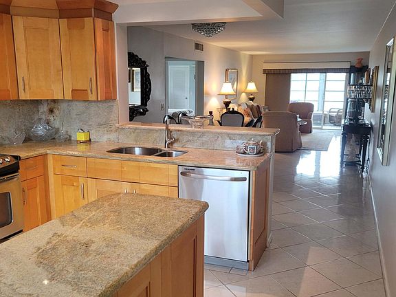 Amazing 2-bedroom, 2-full-bathroom corner unit with designer updates and a wraparound water view from every room. You must see it to believe it! Enter the grand open-concept kitchen with a direct water view. Stunning kitchen and bathrooms include high-end fixtures. Top-of-the-line finishes/appliances will impress guests. The luxurious extra-wide patio makes this THE HOME YOU'RE LOOKING FOR! Century Village provides a social network with all-day activities, followed by nightly entertainment. The remodeled clubhouse can keep you busy morning to night. State-of-the-art facilities and amenities complement your new luxury home in a gated community with round-the-clock manned private security. Listed at $32,600 less than the sales price of a unit directly above (which just sold for $322,500