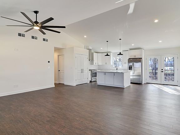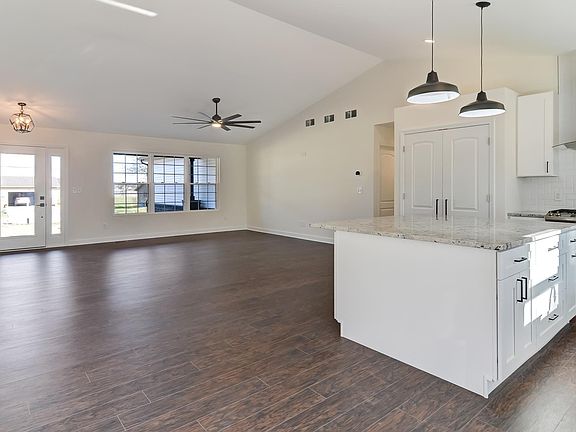 - 1st Bdrm En Suite, Ceiling-9+, Cathedral Ceiling(s), Tray Ceiling(s), Ceiling Fan(s), Walk-In Closet(s), Stone Counters, Eat-in Kitchen, Kitchen Island, Open Floorplan, Double Vanity, Tub and Separate Shower, Tub/Shower Combination, Main Level Bedroom Suite, Custom Cabinetry