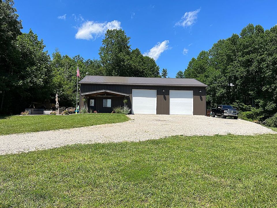 Quiet country living with a gorgeous view overlooking your 1/2 acre pond. Built in 2021, this 11 acre property offers a 40x60 pole barn house with 24x40 living quarters, offers 14ft ceilings with an up stairs bedroom. The kitchen comes with stainless steel appliances including; electric oven, dishwasher and side by side refrigerator. This home is also equipped with an on demand water heater and a mini split system. The home has been spray foamed. The 36x40 garage has 2 bays with 12x12 garage doors. There is also attic storage above the garage.