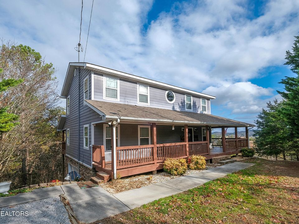 Lakefront Beauty on 1.42 acres includes a pond stocked with fish! Wrap around porches on main level, for lake and mountain views. Enter the spacious kitchen with open living room, gas fireplace & dining area. 1/2 bath for guests, Main level Master bedroom generous master bath whirlpool tub, shower, large vanity. Upstairs features an additional bedroom, with a large playroom, man cave with closet, and another large room that can be used as office, den, whatever you choose & full bath as well. The lower level has a bonus room with sliding doors and a view of the lake. Laundry and garage are also on the lower level.