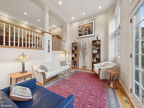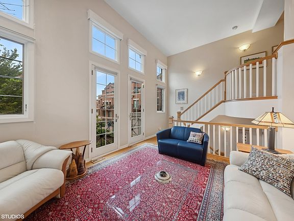 Welcome to The Pointe! This impeccable and spacious 3BD/2.1BA townhome is located in a beautifully landscaped, private, and quiet courtyard in East Lincoln Park, offering a one-car attached garage and an additional exterior parking pad. This home has an amazing amount of natural light throughout. The kitchen has hardwood floors, white cabinets, stainless steel appliances, a pantry closet, and an island with a breakfast bar. The open kitchen seamlessly flows into the living area, perfect for entertaining, and is completed with a fireplace, built-in bookshelves, storage, and a large balcony. The separate dining room overlooks a second living space with a Juliet balcony and high ceilings. 3 bedrooms on one level! The main bedroom features a vaulted ceiling, fireplace, enormous built-out walk-in closet, and built-in bookcases/storage. The updated main bath includes a dual vanity, skylight, whirlpool, and walk-in shower. Both additional spacious bedrooms on the third level have access to an additional balcony. The washer and dryer are conveniently located on the same floor. Updates include California Closets, new cornices over LR and BR windows, installed garage shelving, created two storage closets under stairways, built-in wall cabinet in BR hallway, replaced carpets, all newer windows and doors throughout the front of the house (2012), skylights (2012), newer roof (2012), heating and cooling system (2014), new dishwasher and gas range with air vent (2024), porch decks (2018 and 2022) and tuck-pointing (2012). Located within the highly sought-after Lincoln Elementary School and Lincoln Park High School districts, this home is in a fantastic location near the lake, Lincoln Park Zoo, Oz Park, shops, nightlife, and restaurants. Everything is just outside your door!