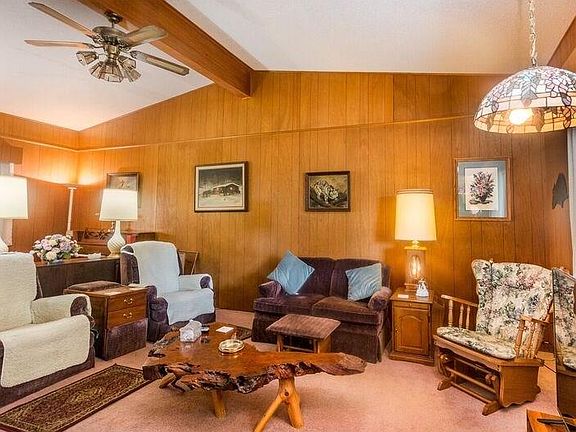 Well-maintained 2 bedroom, 1.5 bath with 2 car tuck garage on 3/4 acre lot. Enjoy 3-season porch expanding full length of home. Walk-out basement, patio and custom stone fireplace. New roof & siding 2014. Appliances include vintage stove, garbage compactor and Nutone food system with attachments. Gate to garage has electric opener.