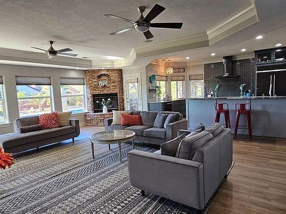 Unique opportunity Endless possibilities! Want to feel like you live in a resort everyday? This exquisite home has it all. Expansive split floorplan, with beautiful primary suite featuring garden tub, and opens to a private back patio. The home has high ceilings, spacious bedrooms, open concept great room, with massive kitchen and pass through windows to the outdoor kitchen. Large inground pool with waterfall.