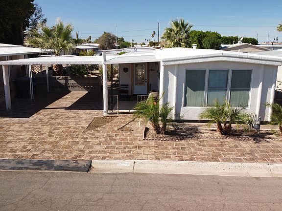 This cute 2 bedroom 2 bathroom home in Del Oro Mobile Estates has become available. Very nice interior that features; tile flooring in kitchen and bathrooms, laminate in the living area and bedrooms. Nice carport, and side yard with neat pavers. Equipped with a washer and dryer area and there is even an extra storage room in the back! Refrigerator only 3 years old. Affordable comfortable living, contact us to see it today!