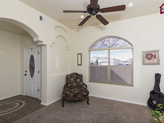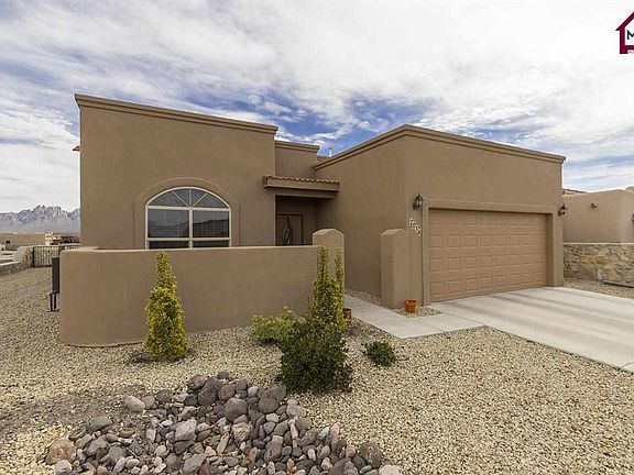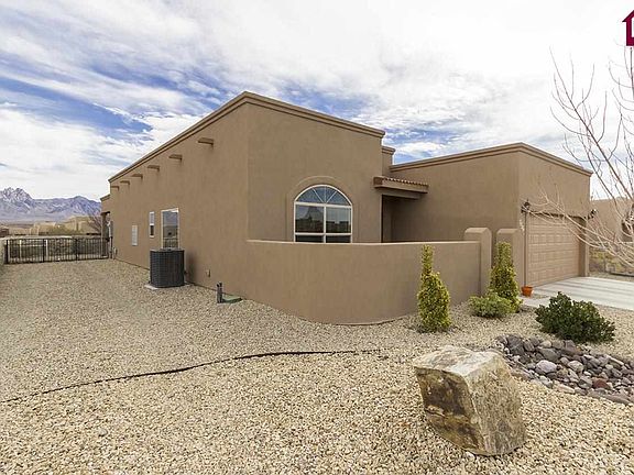 Be enchanted by this beautiful 3 bedroom, 2 bathroom southwestern home with 1,866 square feet of living space. The interior features an open floor plan, wonderful archways, and high ceilings. The carpeted living room includes a superb double-sided gas fireplace that can be enjoyed from the back patio as well! The kitchen gives you everything you need with its tile floor, elegant granite counter tops, center island, wood cabinetry, and plenty of counter space. You can then enjoy your meal in the open dining area with accompanying chandelier. The spacious master suite has a full bath with a jet tub, walk-in closet, double sinks, and tiled floor. The two spare bedrooms feature carpet floors and share a bathroom. Next, step outside and explore the exterior which features Xeriscaped yards, courtyard entry in the front, and a 2 car garage. You can also enjoy the large covered patio with mountain views.