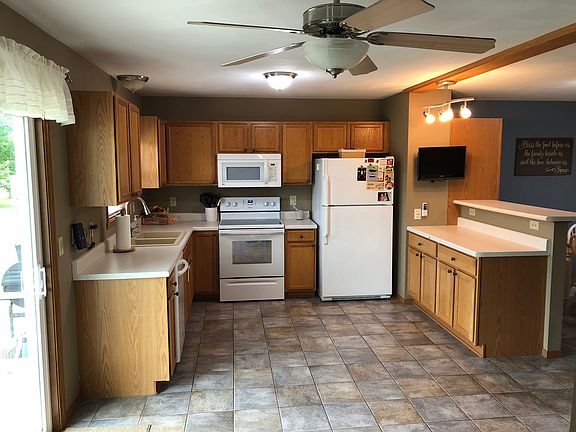 Great location in the Byron school district. This 3 bed, 2 bath 2 story home features a dining room/area. lg eat-in kitchen w/breakfast bar & table table space w/doors to the patio and back yard complete with a heated 18 x 10 shed. Family room and half bath complete the main level. 3 bedrooms and shared bathroom on the upper level. Whole house humidifier, underground tiled eave downspouts, insulated and sheeted garage.
