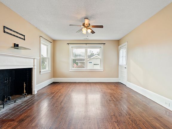 Non-working fireplaceHardwood floorsAntique style glass knobsScreened porch