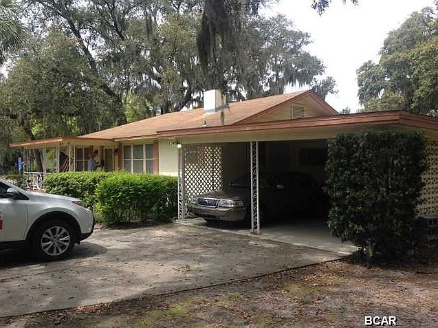 You have got to see this Florida Cottage in Historic St. Andrews. This home sits on almost half acre corner lot with large camellia shrubs, palms, and large Oak Trees. This home is concrete block and stucco construction, has been freshly painted on the interior, and has tons of space and extra storage. There is also an attached 2 car garage and a carport and plenty of parking. All of this and you are a short walk to the Bay and St. Andrews Marina. If you are looking for the old Florida charm vacation home or to live in, this is the location and home to have. High and dry with a view of the Bay from your front porch.