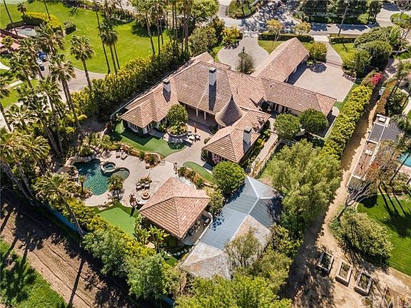 When you want it all! Rare single level living on completely secluded full acre of diamond resort grounds. Voluminous foyer leads to a stunning living room overlooking the impressive amenities. This luxurious custom estate boasts a dream gourmet kitchen with breakfast bar, dining nook and private wine cellar, opening up to the enormous family room. Walls of windows bring in bonus of natural light. Luxurious primary suite with retreat and romantic fireplace opens to the sumptuous Hollywood bath arena with separate dual bathing areas. Professional office with custom built-ins and game room with pub-type bar are highlights of this thoughtfully designed floorplan. The grounds are beyond amazing with two separate BBQ areas, and a stable area that could be converted to sport court or guest house needs. The incredible party pavilion boasts a fully equipped outdoor kitchen, heaters, bar, fire pit and convenient outdoor bathroom. Surrounded by soaring trees and pristine landscaping, the amazing estate grounds feature a spectacular pool, rock waterfall and entertaining water slide along with fun putting green. Two separate motor courts and garaging for six cars adds to the desirability of this stunning estate. This truly remarkable property needs to be seen to be fully appreciated.